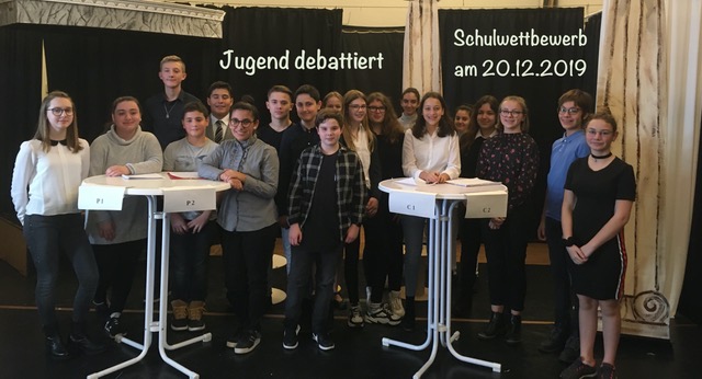 Ob die Schule erst um 9 Uhr beginnen sollte, war eine der ersten Fragen, mit der sich ausgewählte und sprachbegabte Schüler*innen der 8. Klasse in der Projektwoche „Jugend debattiert“, die kurz vor den Weihnachtsferien stattfand, beschäftigten. Die Schüler*innen wurden vom Rhetorik-Grundkurs der 11. Klasse betreut und angeleitet und lernten dabei das Debattenformat Jugend debattiert kennen und wie man Argumente sinnvoll aufbaut und zielführend debattiert.