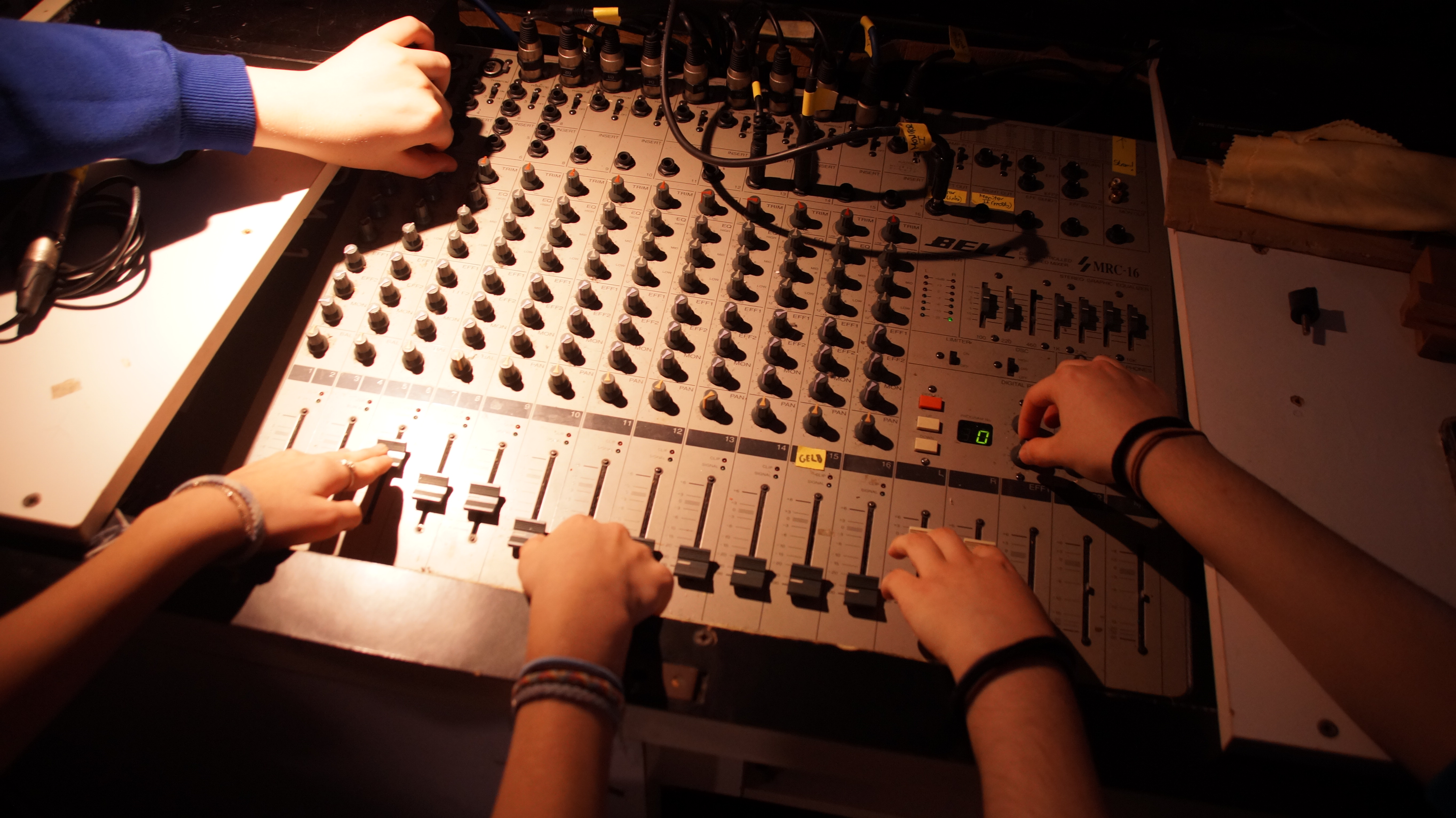 Für die musiktechnische Betreuung von Musikabenden und diversen schulischen Veranstaltungen erlernt ihr den Umgang mit dem großen Mischpult in der Aula.