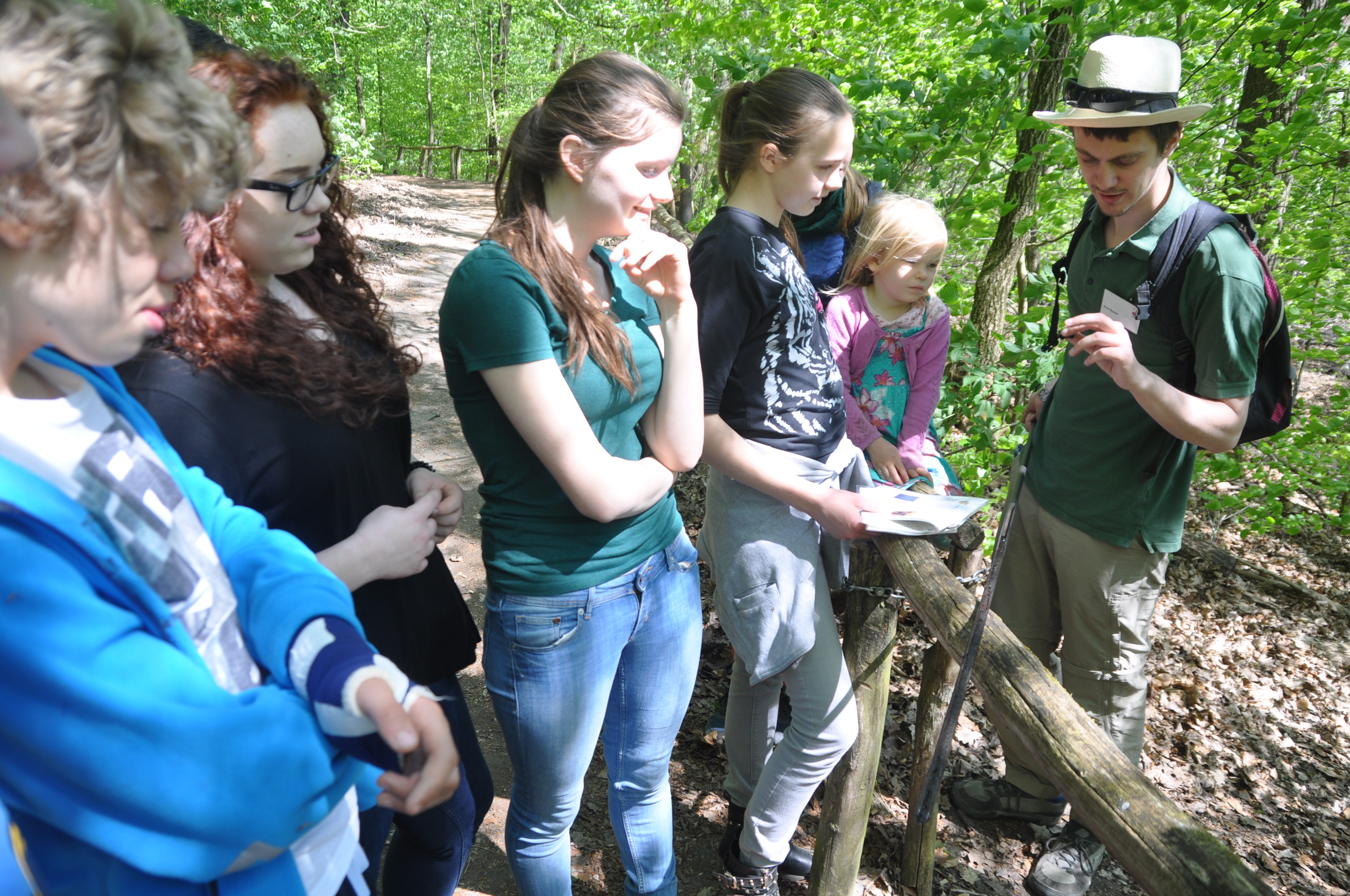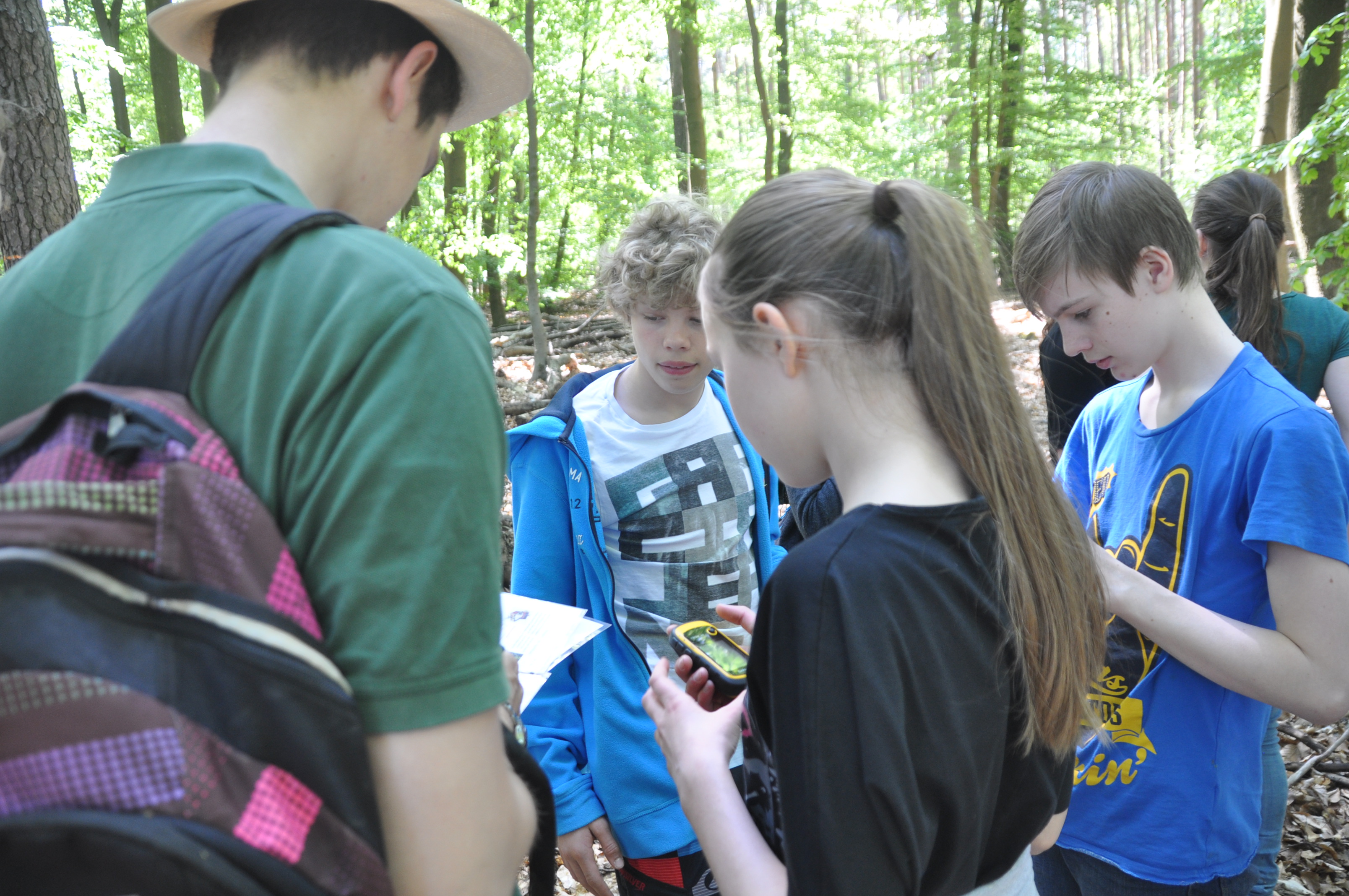 Nachdem wir den steilen Abhang mehr oder weniger runter gerannt sind, suchten wir uns ein schönes Plätzchen für das Klassen-Picknick. Nach einer guten Stunde traten wir den Rückweg zum Hauptweg an. Von dort ging es weiter zum Ökowerk, denn der Hauptteil unseres Wandertages lag noch vor uns, nämlich Geocaching. Das ist eine Art „moderne Schatzsuche“ über GPS.