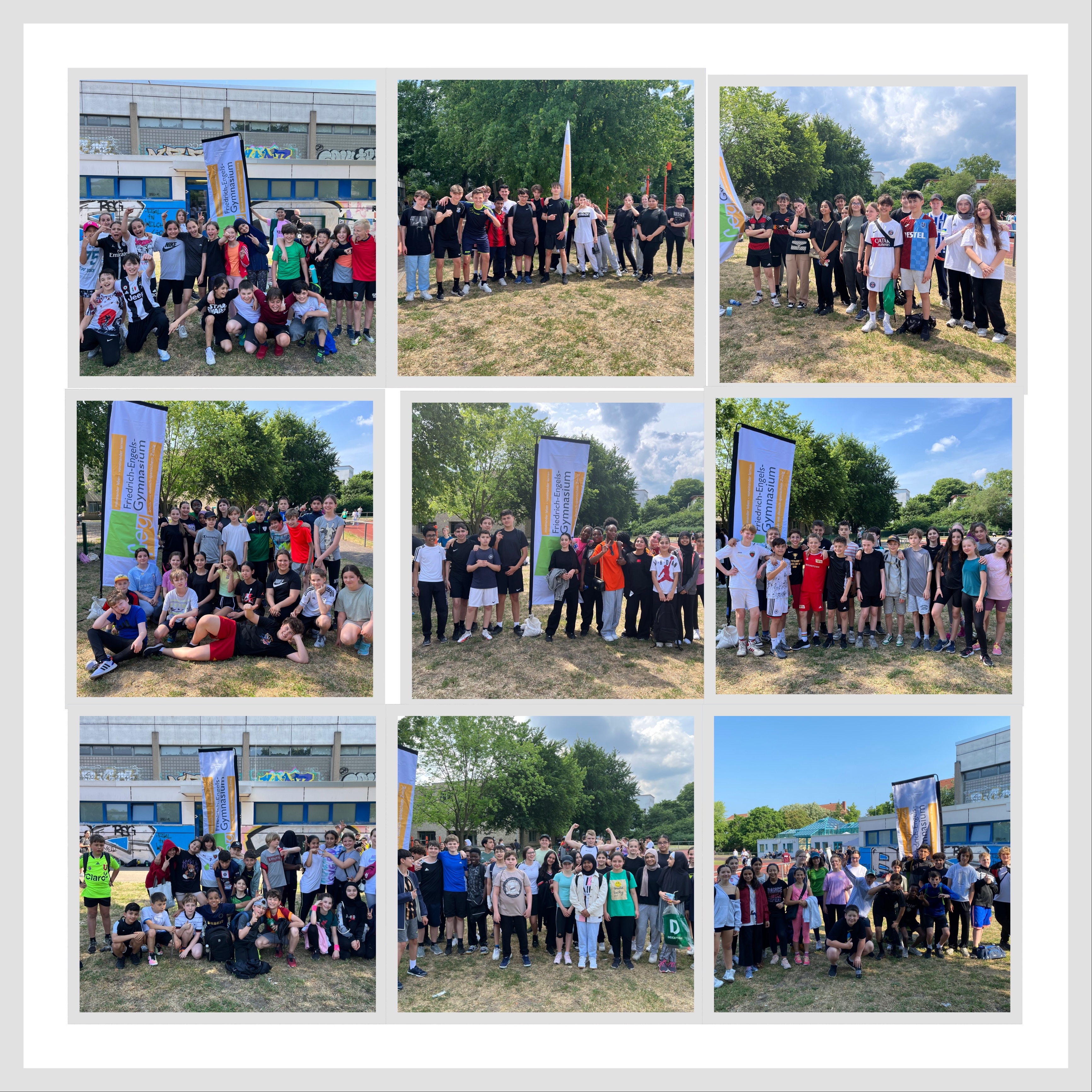 Am 27.06.2024 fand ein durch die Schülervertretung organisiertes Völkerball-Turnier statt. Insgesamt haben sich von Klasse 5-10 sechzehn Teams angemeldet, um den Gewinn für den Sieger (35€) und für den Zweitplatzierten (15€) in der Caféteria einzulösen. Wurde anfangs innerhalb der Jahrgänge gespielt, fanden dann im Turnierverlauf jahrgangsübergreifend die Spiele statt und am Ende setzten sich die 'Powerranger' gegen die 10a verdient durch.