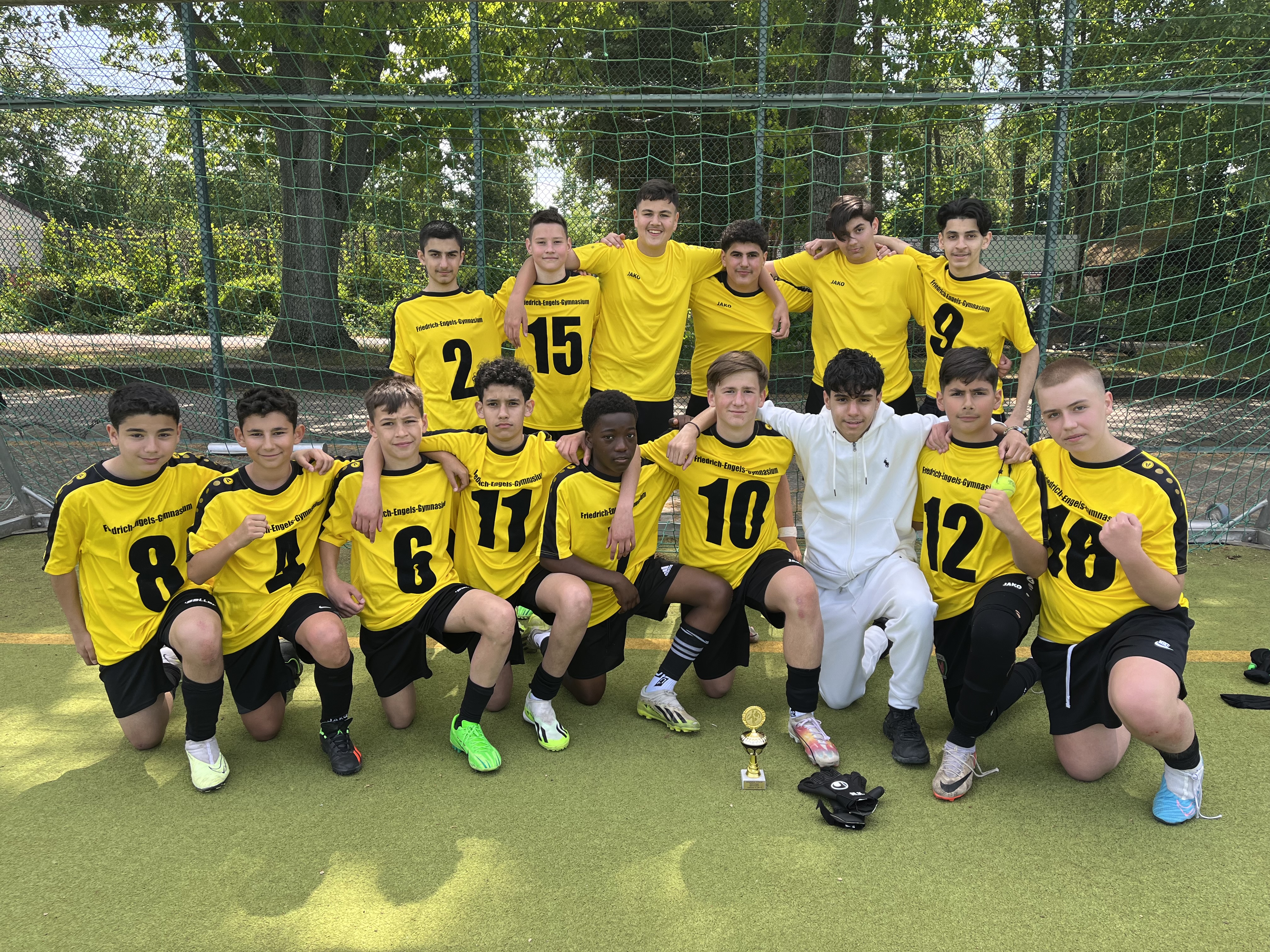 Somit qualifizierten sich die 'Engels' mit nahezu der gleichen Mannschaft für den Regionalentscheid Nordwest mit den beiden besten Schulen aus Spandau, Mitte und Reinickendorf am 21.05.2025. In teils engen Matches wurden die Mannschaften aus Spandau und Mitte besiegt, sodass es zum Finale zwischen den Reinickendorfer Schulen kam. In einem fairen aber hart umkämpften Spiel setzte sich die Romain-Rolland-Schule mit 2:1 durch und qualifizierte sich für die regionalen Halbfinales in Berlin. Der 2. Platz ist eine mehr als achtsame Leistung und macht Freude auf das nächste Jahr.