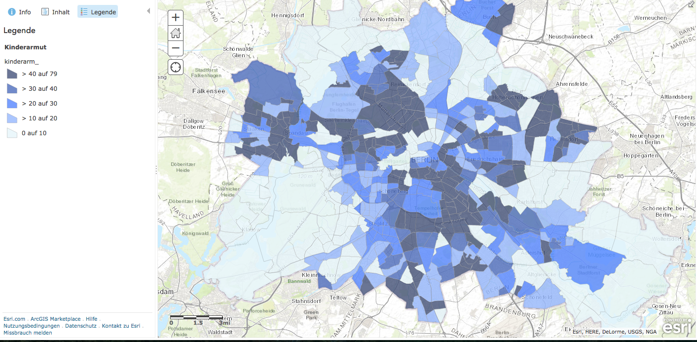 Die Ergebnisse zeigen sehr gut sozial problematische Teile von Berlin, aber ebenso Gebiete, in denen die Bevölkerung im Wohlstand lebt.