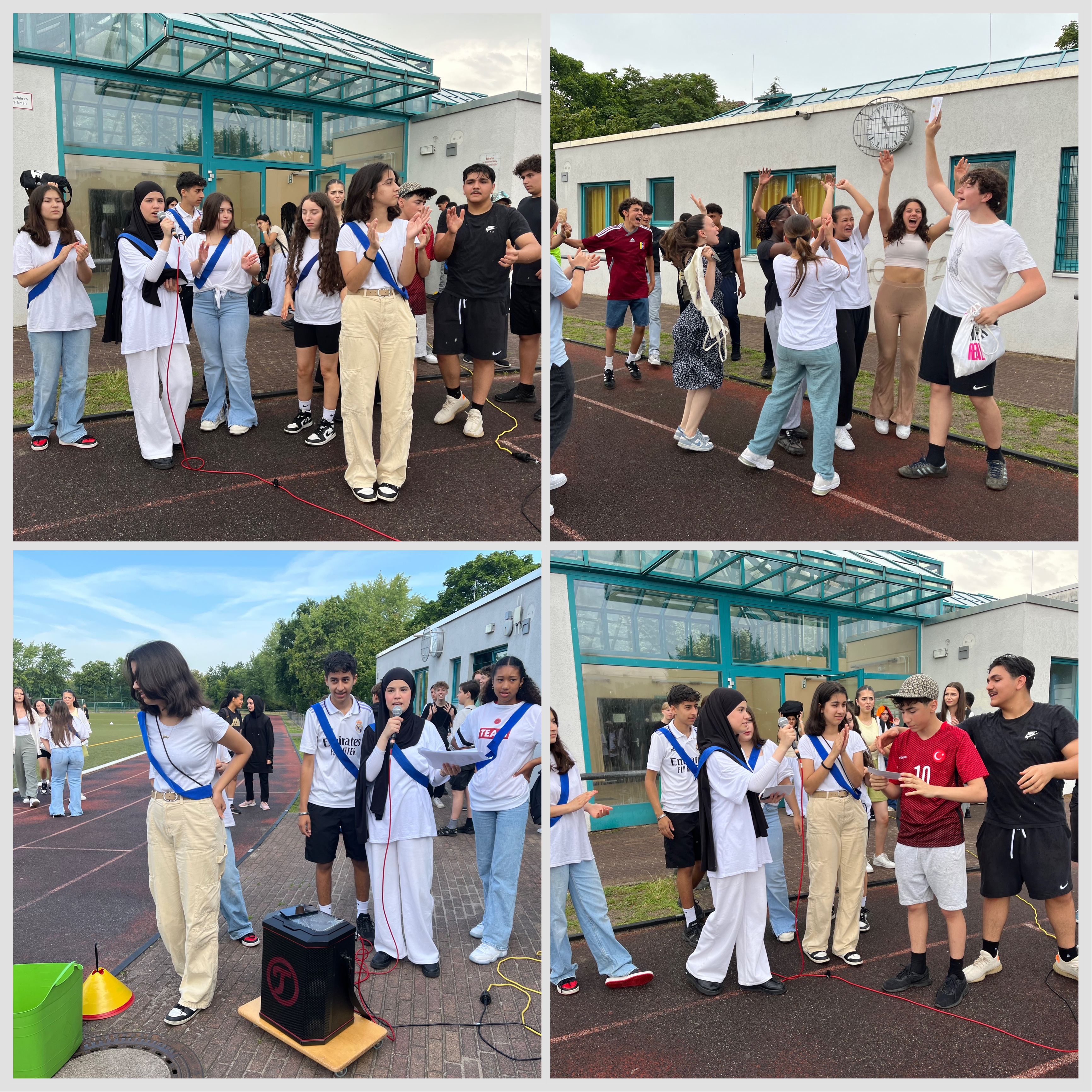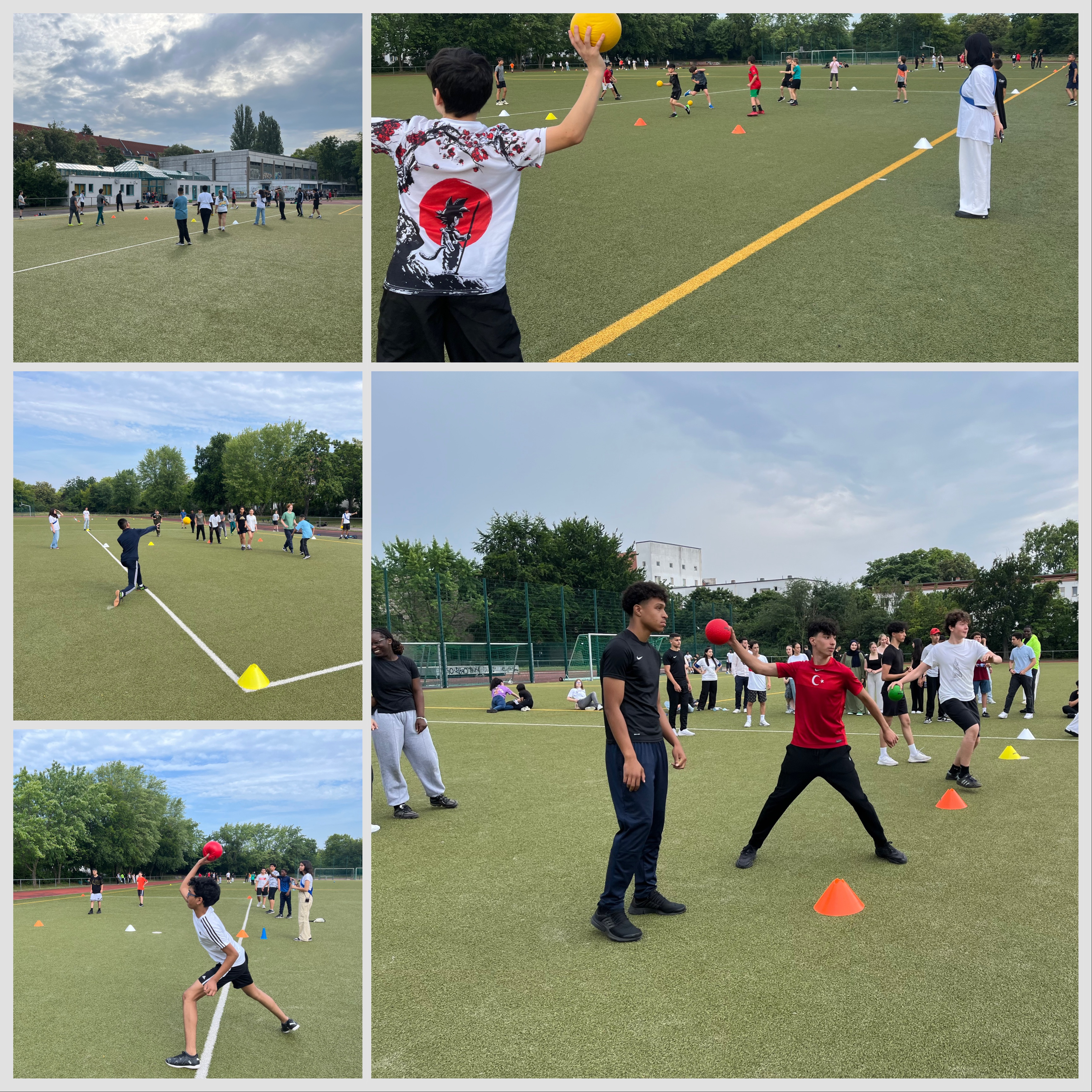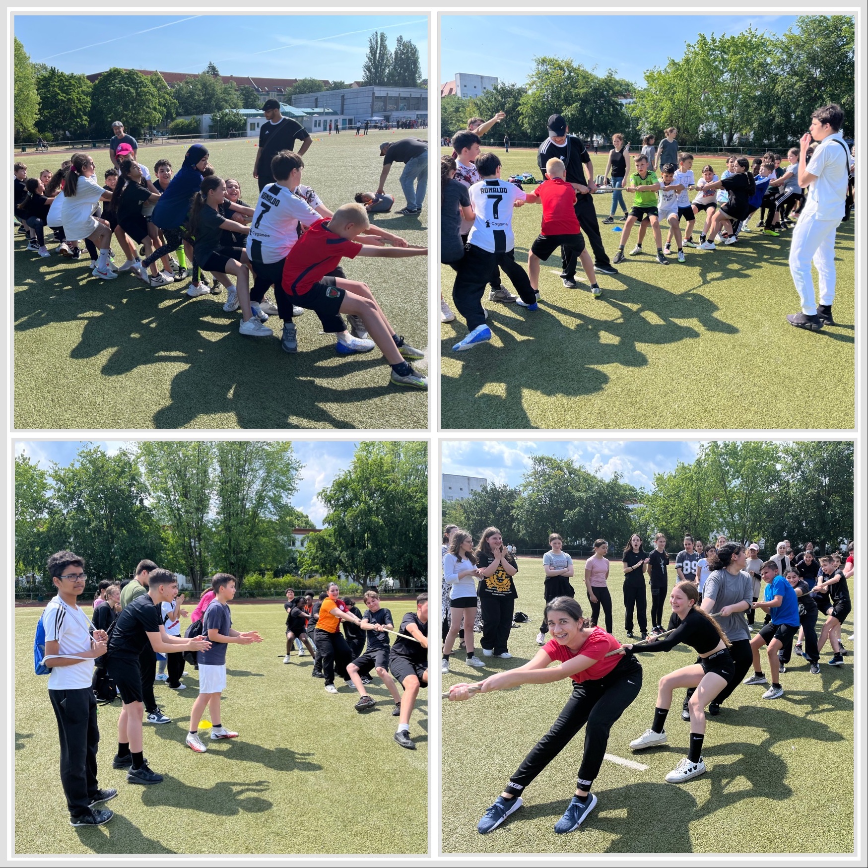 Am 27.06.2024 fand ein durch die Schülervertretung organisiertes Völkerball-Turnier statt. Insgesamt haben sich von Klasse 5-10 sechzehn Teams angemeldet, um den Gewinn für den Sieger (35€) und für den Zweitplatzierten (15€) in der Caféteria einzulösen. Wurde anfangs innerhalb der Jahrgänge gespielt, fanden dann im Turnierverlauf jahrgangsübergreifend die Spiele statt und am Ende setzten sich die 'Powerranger' gegen die 10a verdient durch.