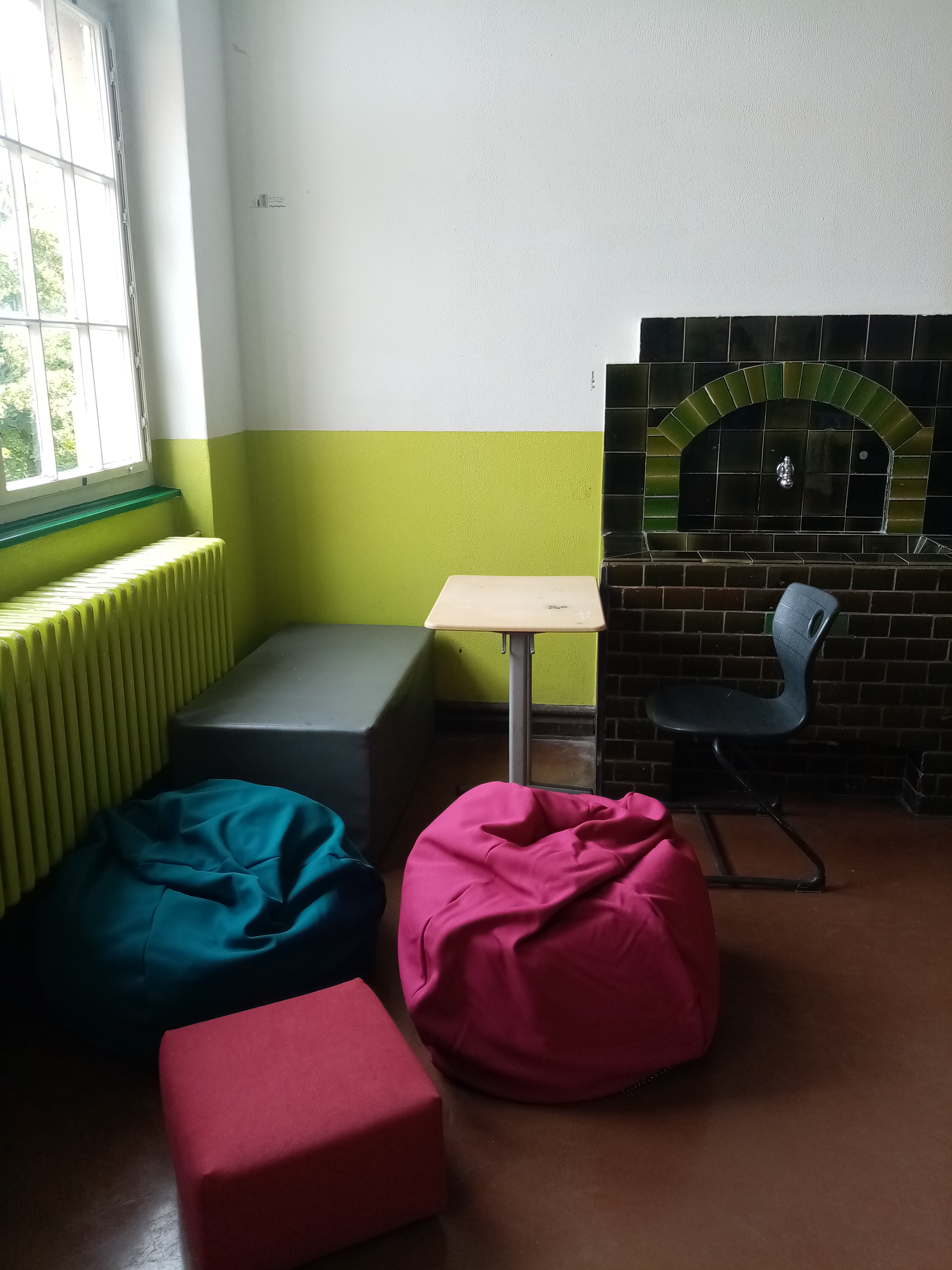 Diese wunderbaren, feuerfesten Sitzmöbel stehen zum Chillen und Lernen im 3. Stock - danke an die Jugendjury Johanna Braun, Isabella Marko und Max Huarac (alle 10c)!